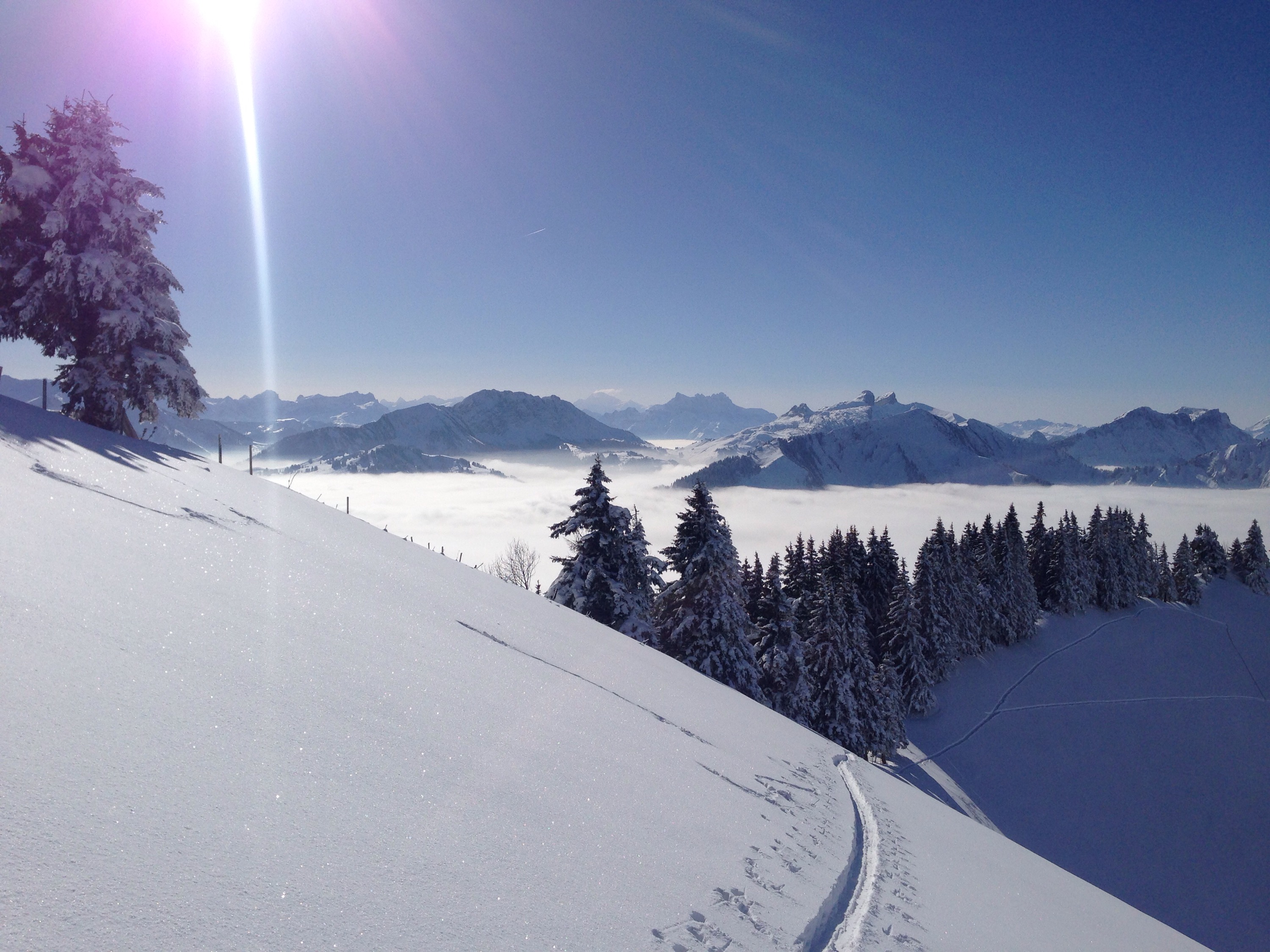 Pour bien commencer la saison de ski randonnée 2014-2015, nous avons profité de cette nouvelle neige du côté de l’Hospice du St Bernard!