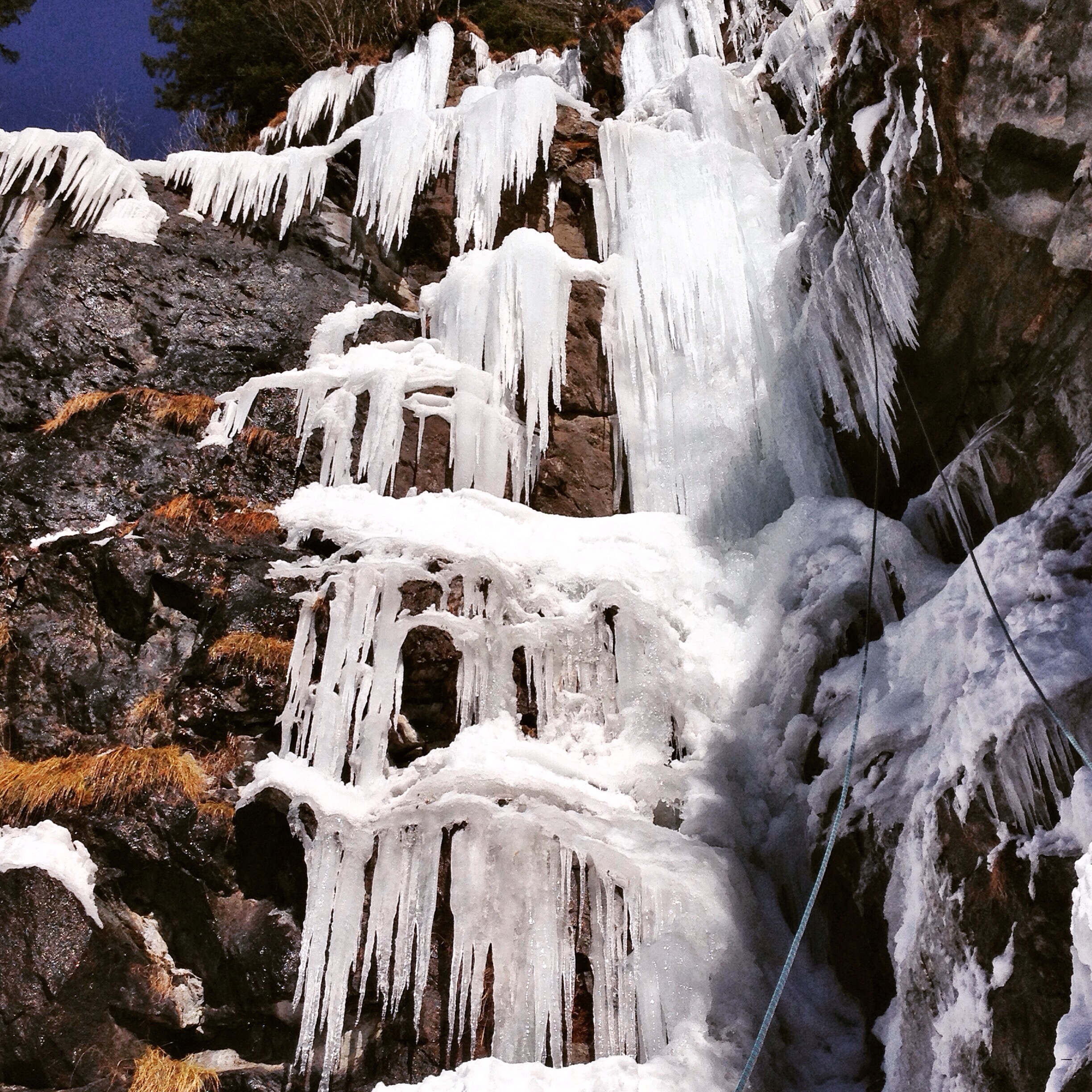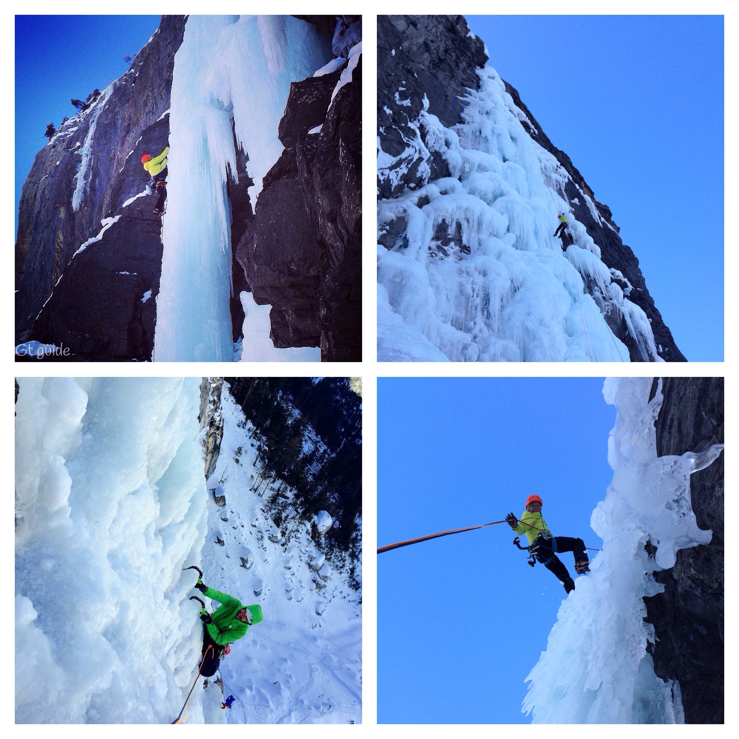 Merci Caro pour cette première sortie ensemble! La confiance fut là et nous avons pris tout notre temps pour apprécier les nombreuses structures différentes des deux cascades. Les longueurs de goulottes sur le haut de Rubezahl furent une grande surprise et un plaisir doublement partagé en arrivant sur ce plateau presque ensoleillé !