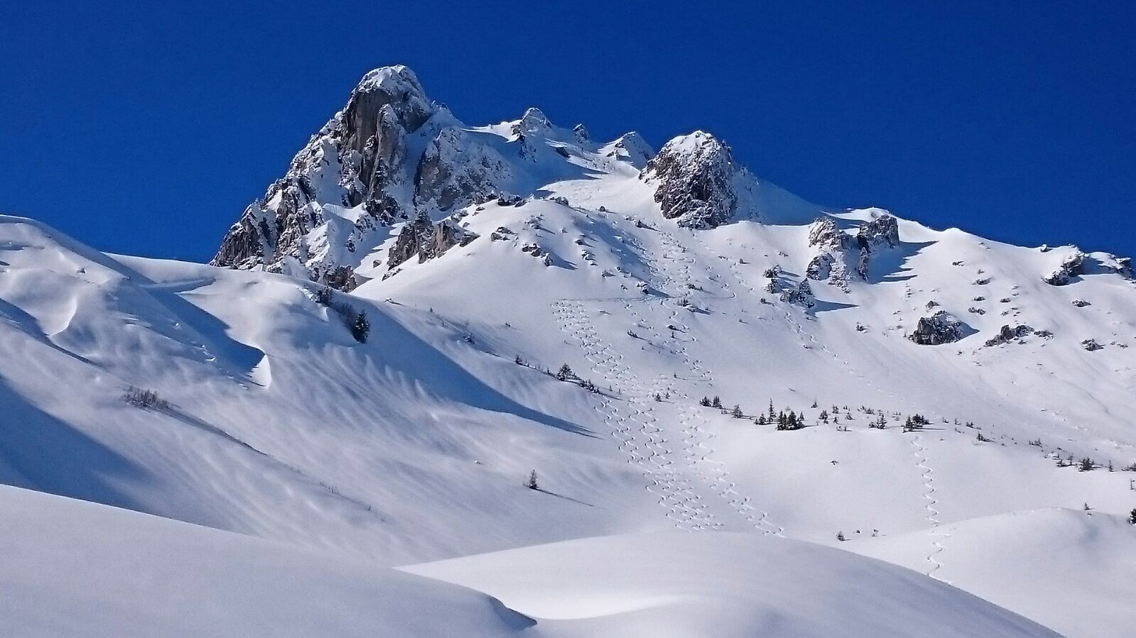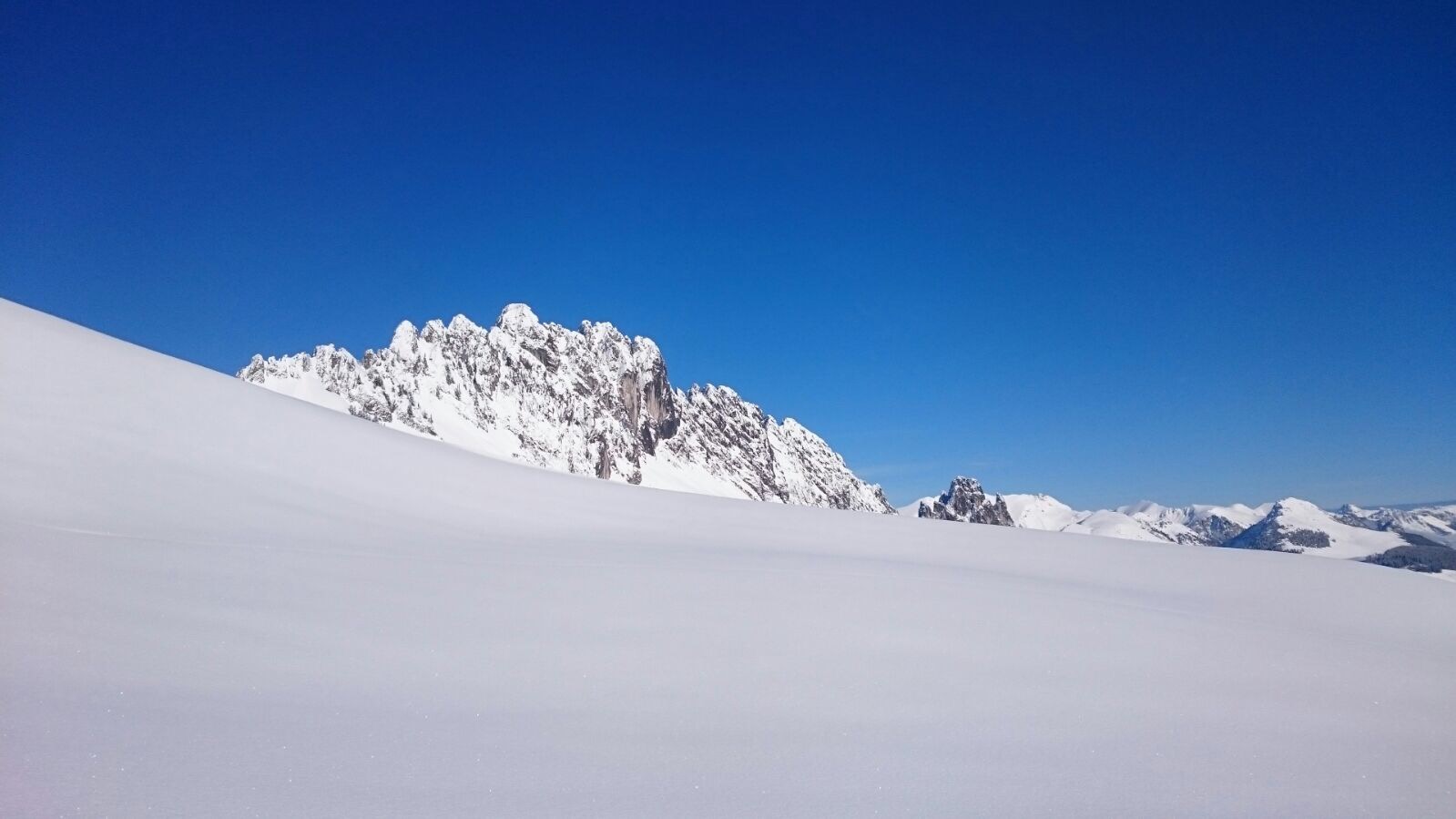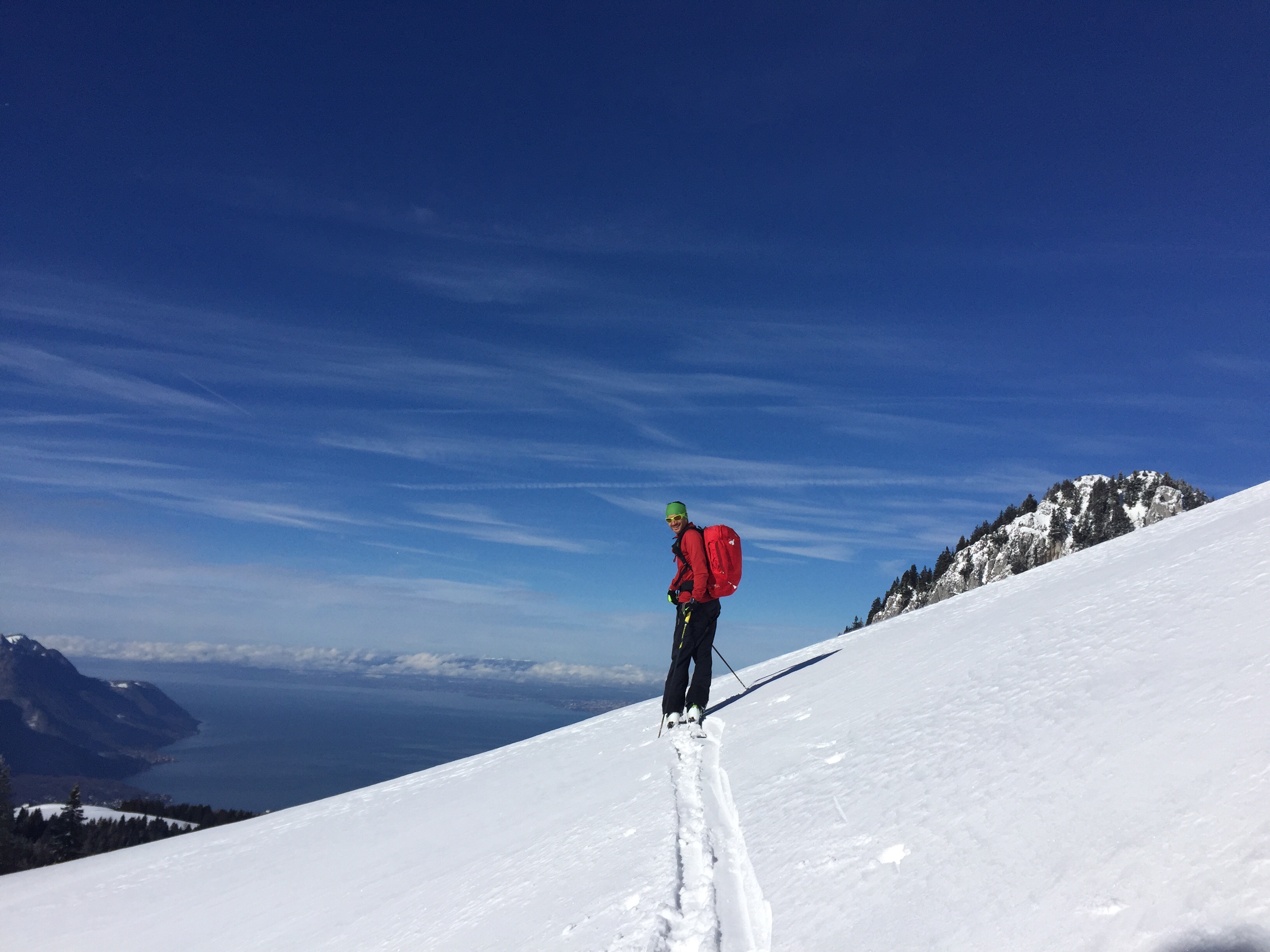 La montée à la Wandflue est douce au début et plus raide à la fin. La trace est faite et nous sommes tranquilles face aux dangers d’avalanche. L’arrivée juste sous le sommet est impressionnante mais le paysage est de toute beauté.