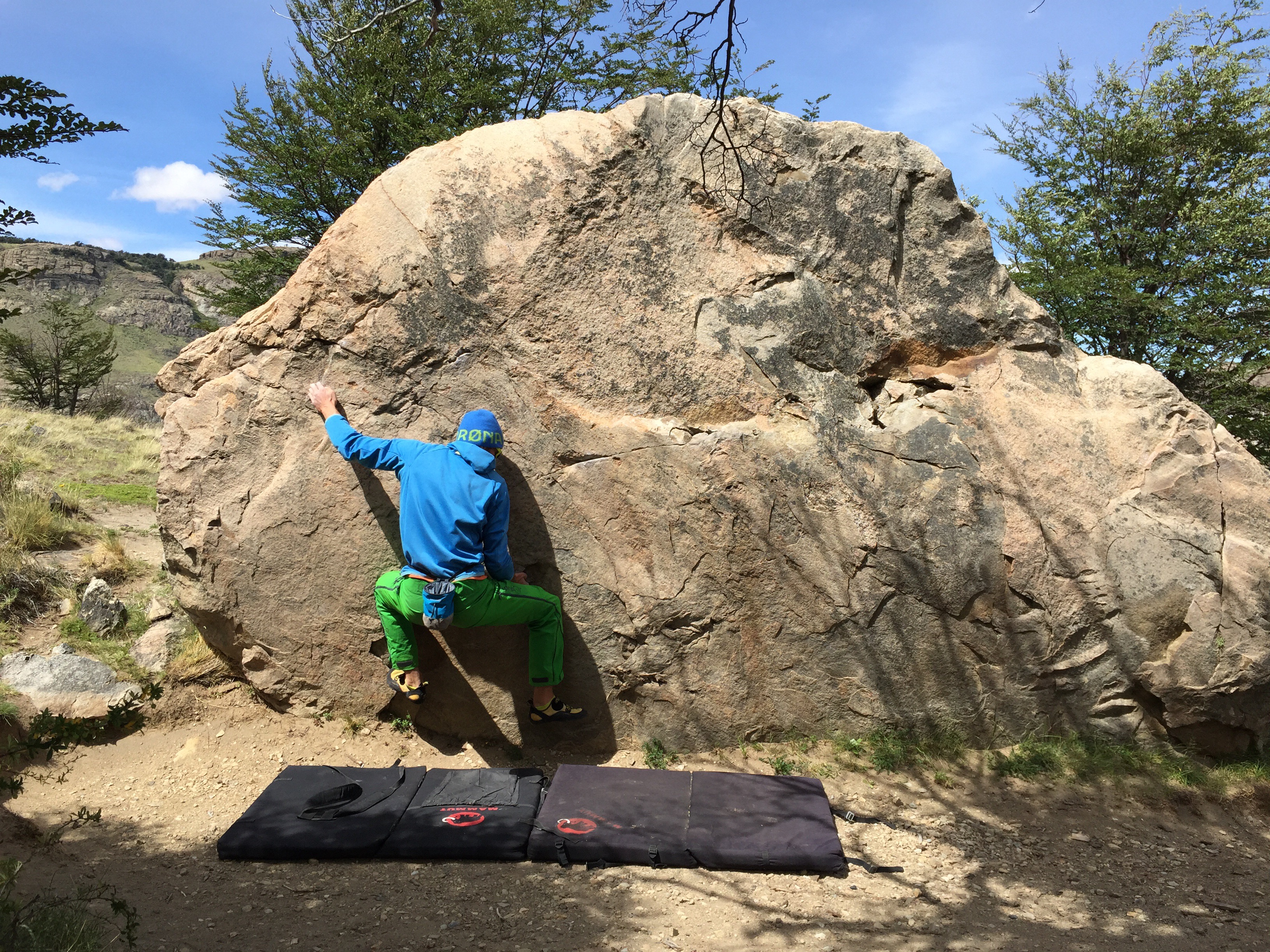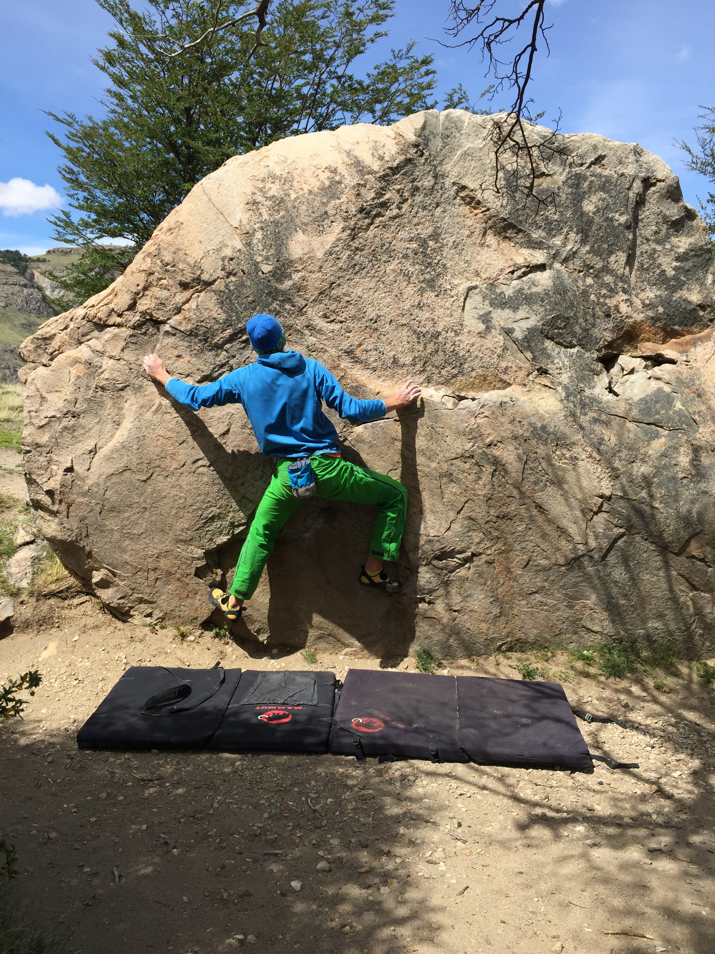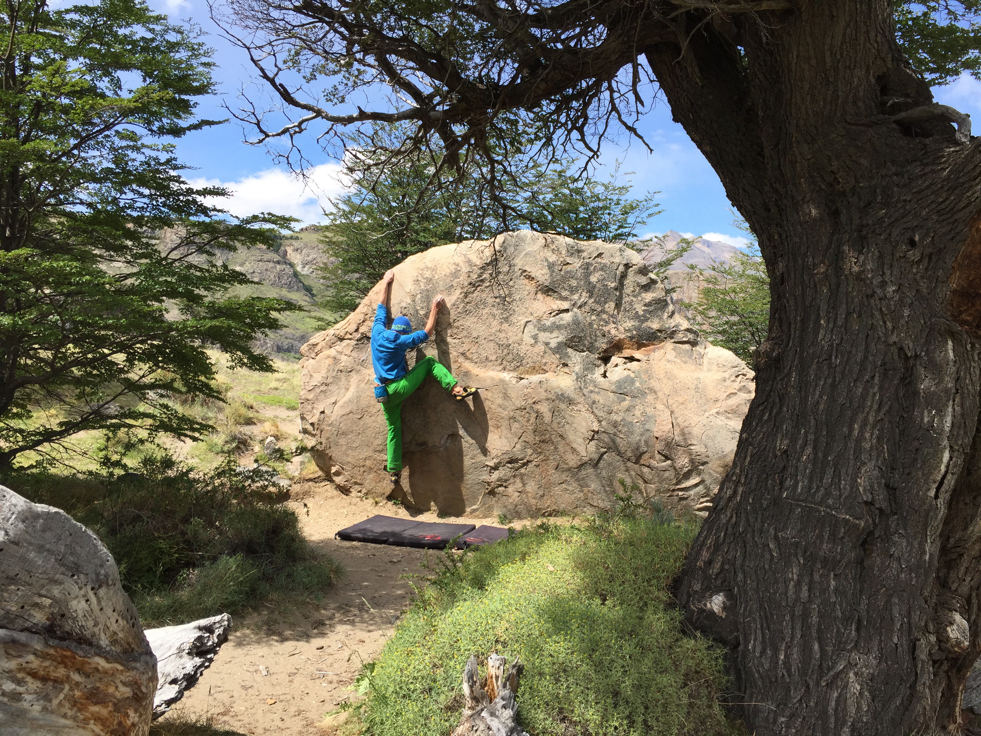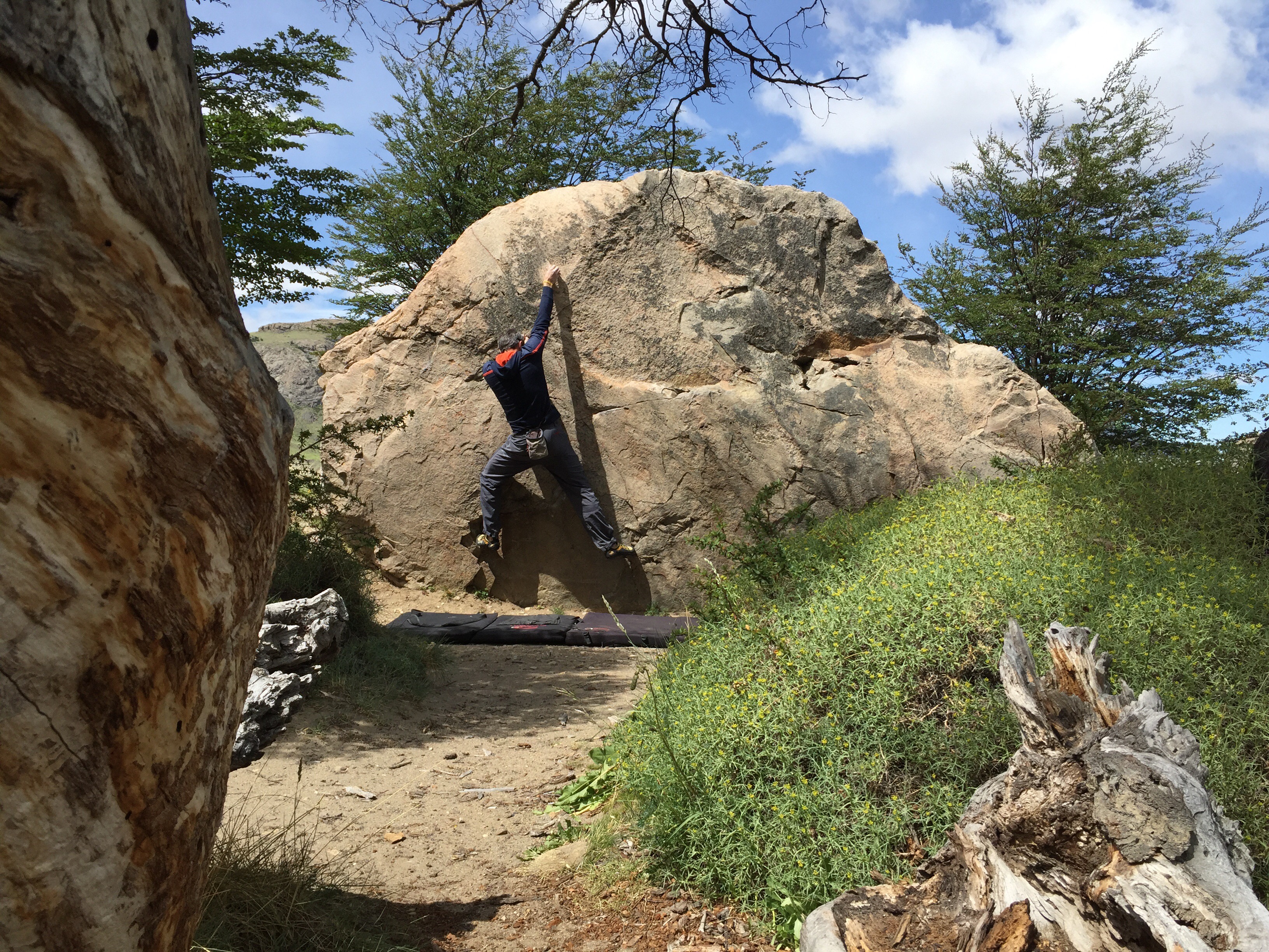 Contre l’ennui et pour garder l’envie, nous allons faire du bloc, très beau d’ailleurs tout autour d’El Chalten. Avec les copains valaisans, on se motive, on crée de nouveaux blocs dans lesquels nous nous amusons comme des gamins.