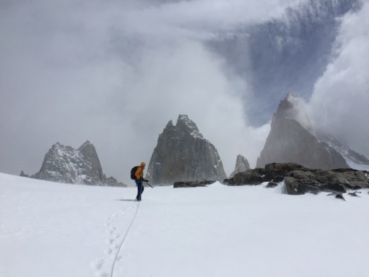 La fin du séjour se fera plus au café qu’en montagne mais le dernier mètre de neige tombé en deux jours nous rappelle le nombre de fois que nous sommes passés à travers les ponts de neige à notre dernière tentative et la sécurité l’emporte. Pas de nouvelles tentatives désespérées pour l’ascension de l’aiguille de Poincenot sur un push depuis El Chalten! Pourtant les sacs étaient prêts, mais pas les conditions.